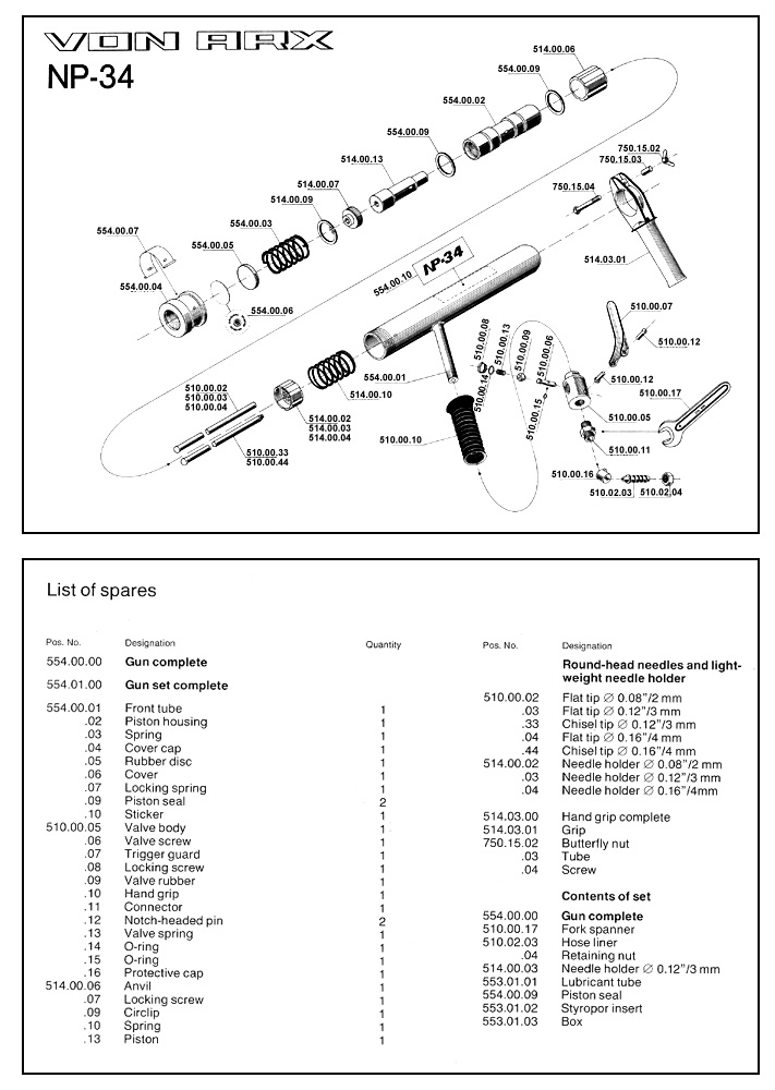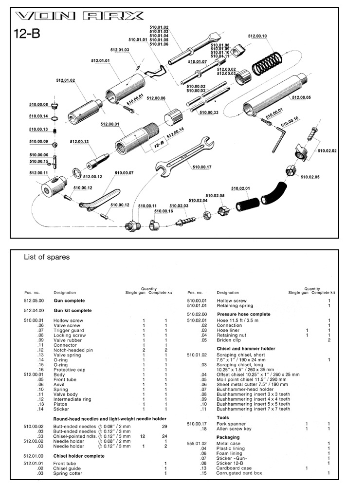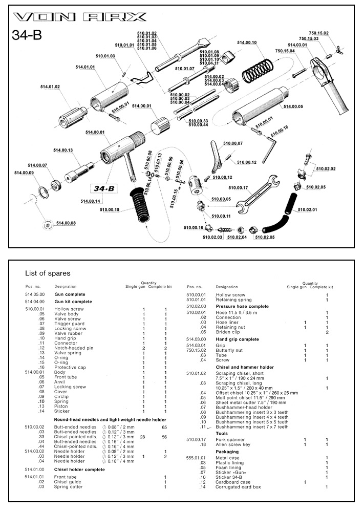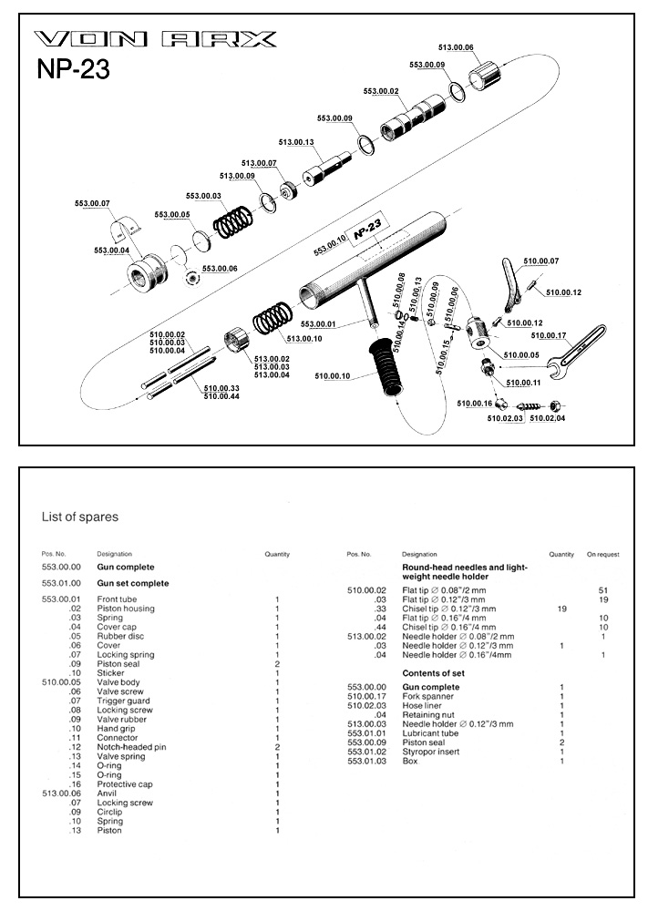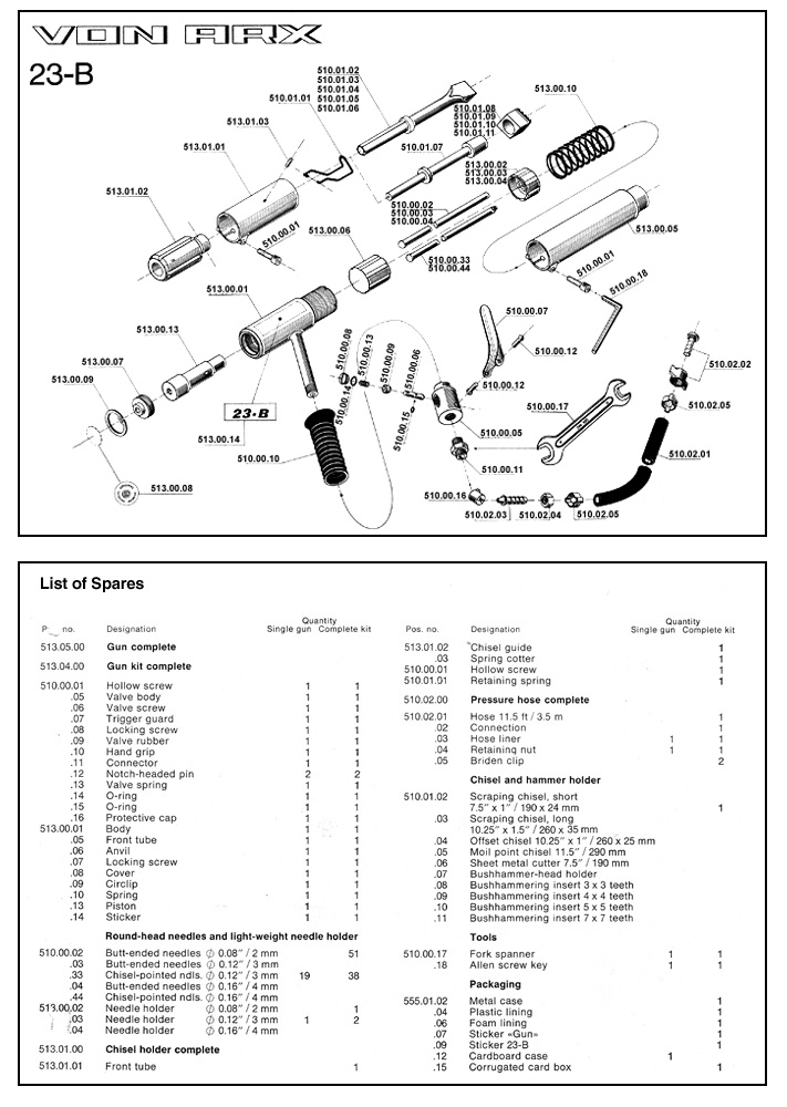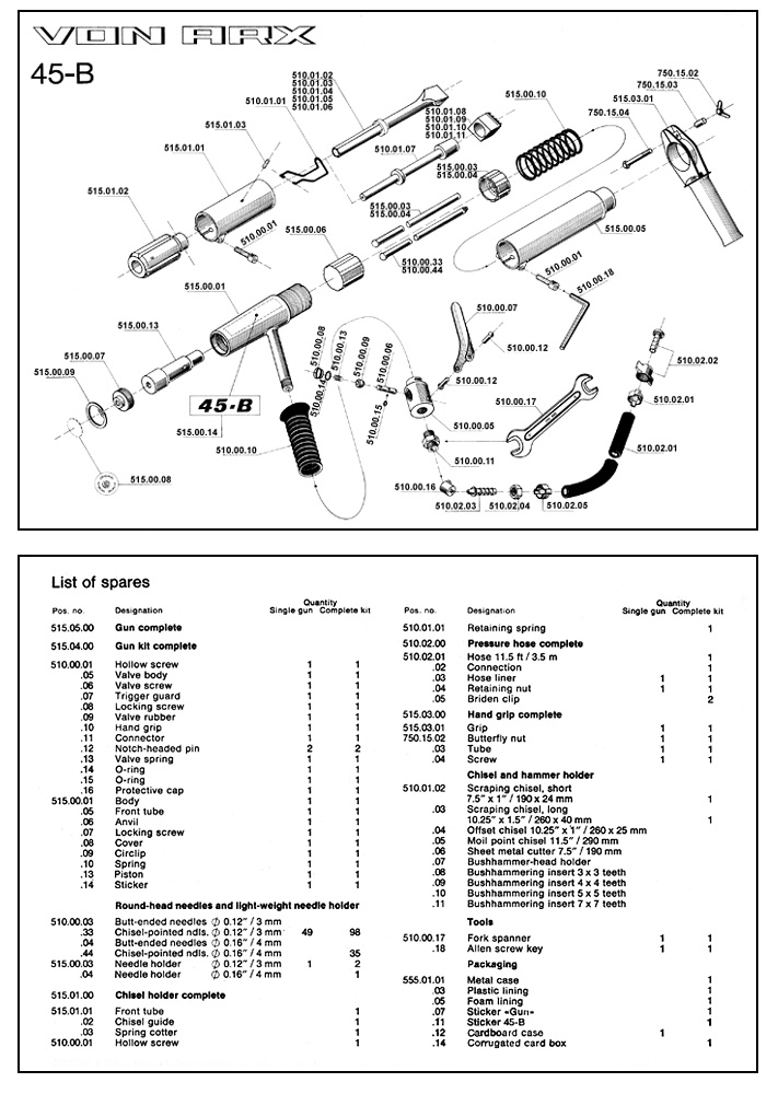 Length Weight Air cons Air pressure Blows/min No. of needles: |